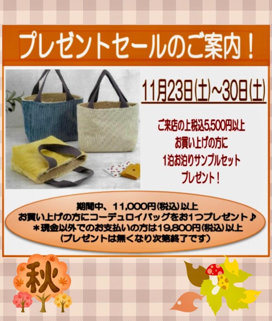 11月23日日(土)〜30日(土)はプレゼントセールを開催します🎁