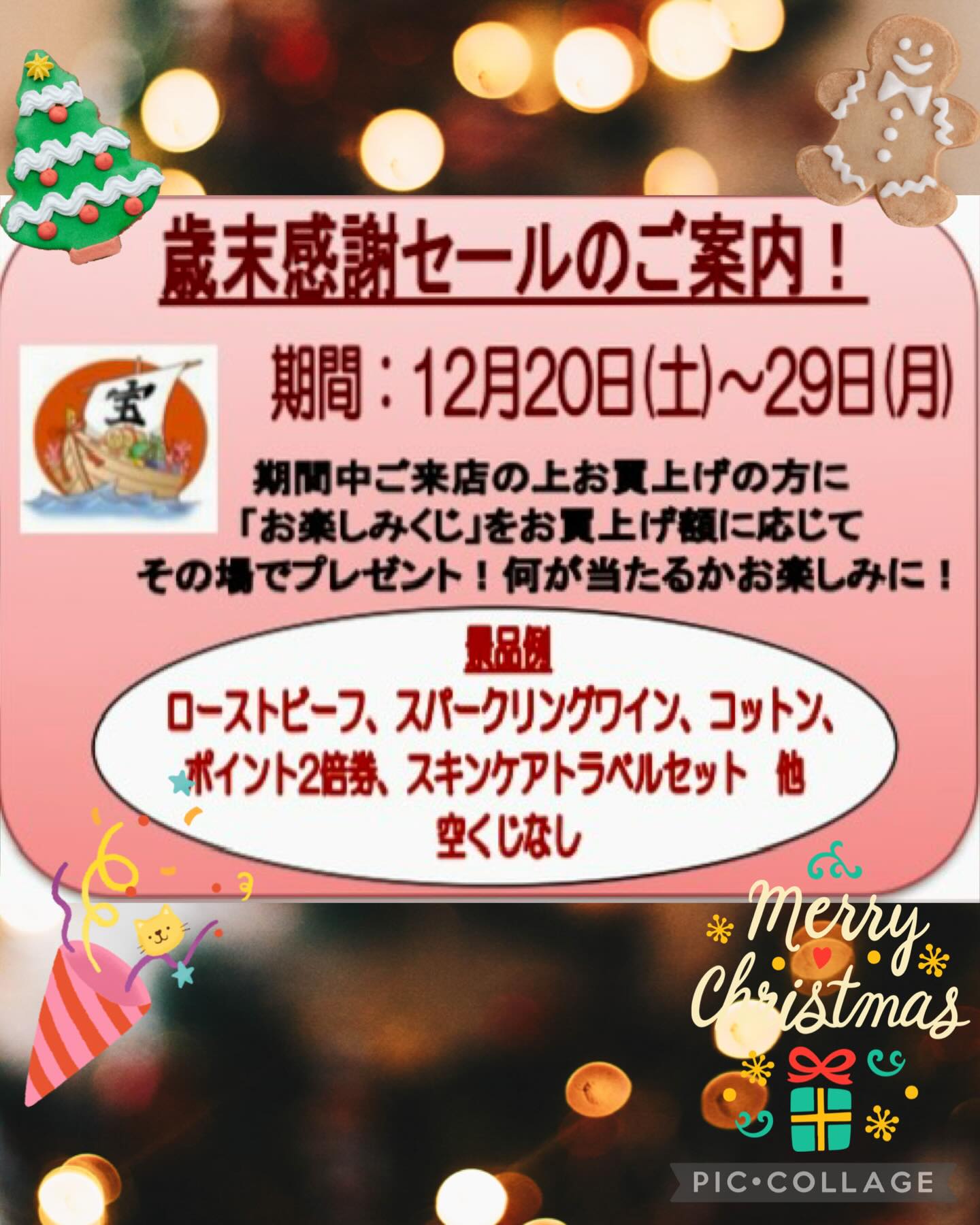 12月20日(土)〜29日(土)は歳末感謝セールを開催🌟