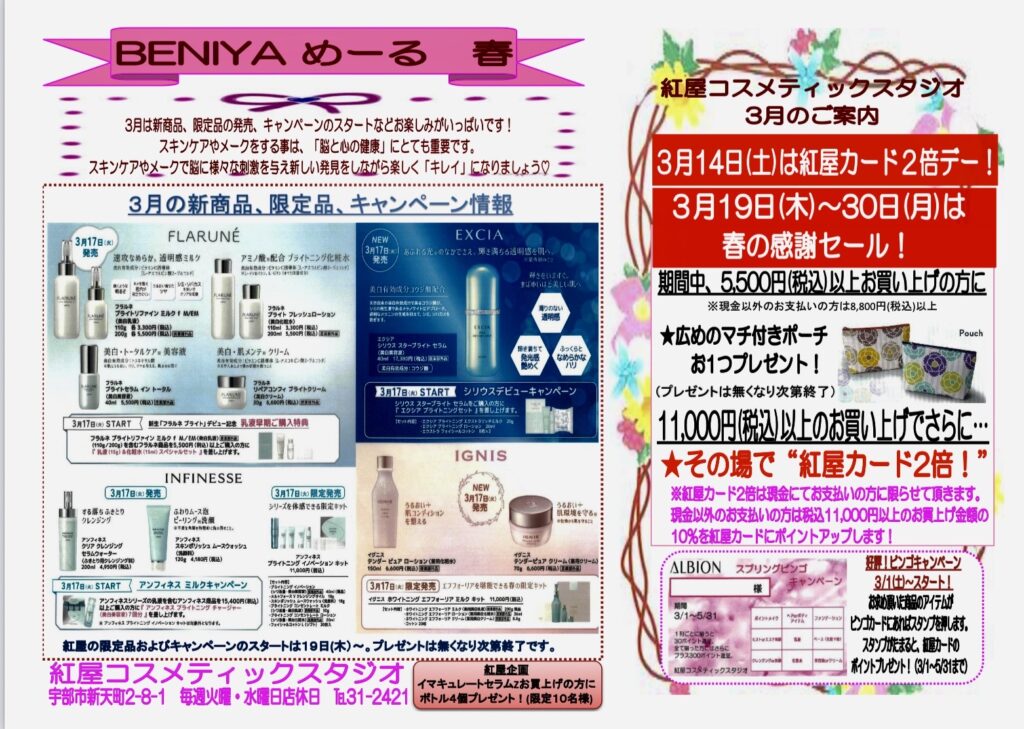 - 19日(木) アルビオン、イグニス新商品、限定品・エクシア新商品入荷日、各キャンペーンスタート!