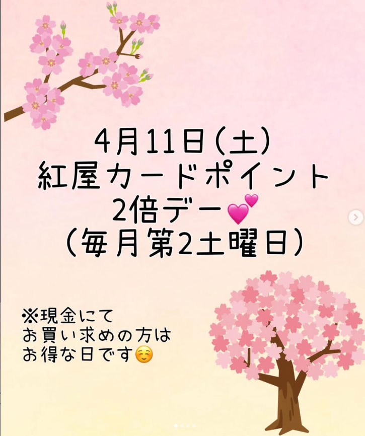 4月11日(土)は紅屋カードポイント2倍デーです❣️